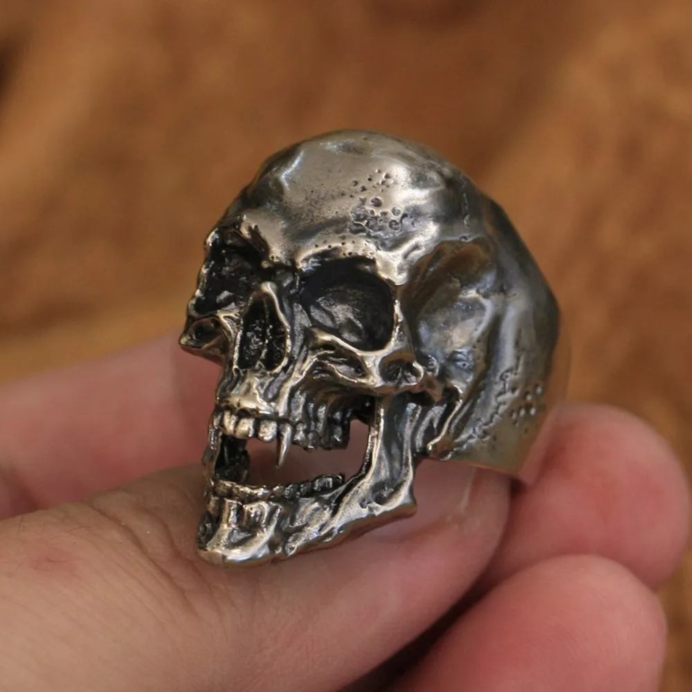 LINSION Cupronickel острые зубы череп кольцо Мужские байкерские Панк ювелирные изделия CP209 США Размер 7 15