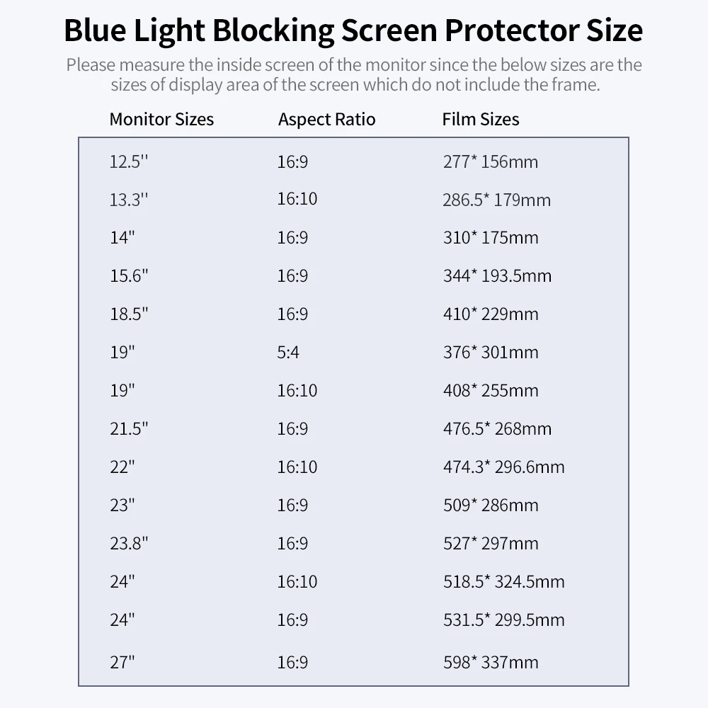 Type1Подходит для: 14 ''ноутбук с 16:9 соотношение сторонТип 2Подходит для: 15,6 ''ноутбука с соотношением сторон 16:9Тип 3Подходит для: 18,5 ''монитора с соотношением сторон 16:9Тип 4Подходит для: 19 ''для контроля уровня сахара в крови с 5:4 соотношение сторонТип 5Подходит для: 19 ''для контроля уровня сахара в крови с 16:10 соотношение сторонТип 6Подходит для: 21,5 ''монитора с соотношением сторон 16:9Тип 7Подходит для: 22 "монитор с соотношением сторон 16:10Тип 8Подходит для: 23 "монитор с 16:9 соотношением сторонТип 9Подходит для: 23,8 ''монитора с соотношением сторон 16:9Тип 10Подходит для: 24 "монитор с соотношением сторон 16:10Тип 11Подходит для: 24 "монитор с соотношением сторон 16:9Тип 12Подходит для: 27 "монитор с соотношением сторон 16:9Тип 13Подходит для: 12,5 ''ноутбука с соотношением сторон 16:9Тип 14Подходит для: 13,3 ''ноутбука с соотношением сторон 16:10Эта защитная пленка синего света блокирует синий свет до 70% и УФ-излучение и подавляет отражение света, эффективно защищая ваши глаза.Особенности:Защита глазБлокирует синий свет до 70% и УФ для эффективной защиты зрения.Почему он вам нужен?Если вы страдаете от сухости глаз, усталости глаз, снижения мелатонина, ультрафиолетового излучения, веснушек, морщин или близорукости, вам нужна пленка синего света, чтобы защитить вас.От необходимости это делатьМы должны использовать компьютер в течение длительного времени, в то время как Роговица и кристаллические линзы наших глаз не могут сопротивляться или отражать синий свет. Более того, синий свет может привести к макулопатии, которая в некоторой степени ускоряет процесс потери зрения.Прост в установкеСначала вы должны убедиться, что размер подходит для вашего ПК, а затем Очистить экран тряпкой для очистки. Во-вторых, снимите защитную пленку 1 и используйте скребок, чтобы полностью прикрепить ее к экрану. Наконец, снимите защитную пленку 2.Без бликовПоверхность матовая, чтобы подавить отражение света, а также эффективно сопротивляться смазке, отпечаткам пальцев и поту.Спецификация:Материал: ПЭТТолщина: 0,39 ммПодходит для: 27 "монитор с соотношением сторон 16:9Упаковочный лист:1 * синий свет блокировки экрана протектор1 * пакет для установки (наклейки, спиртовые салфетки, скребок, чистящая ткань)