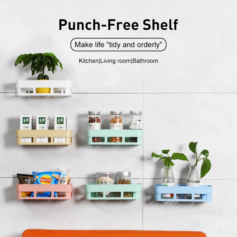 Кухонная полка для хранения, пластиковая прочная настенная клейкая ...