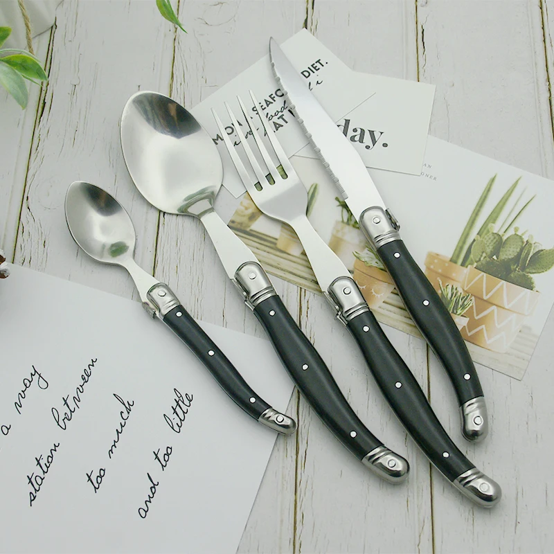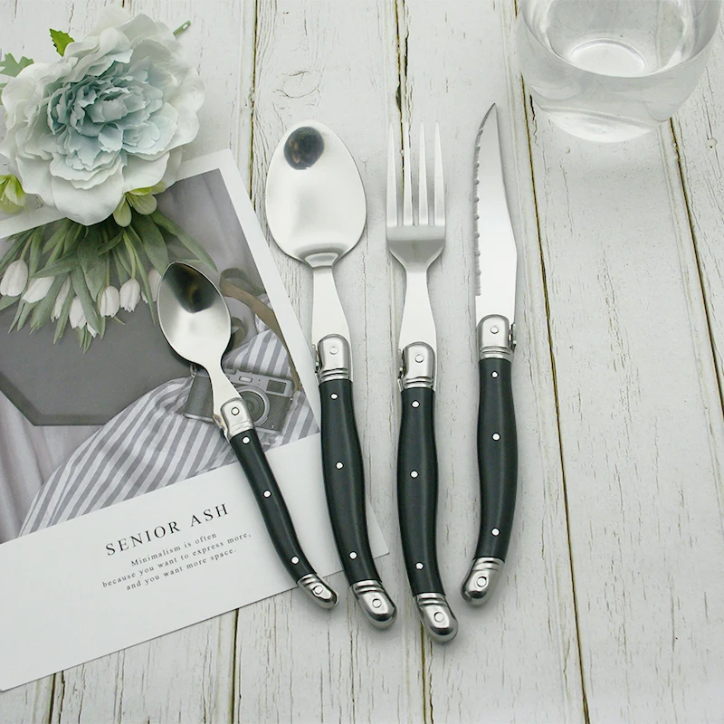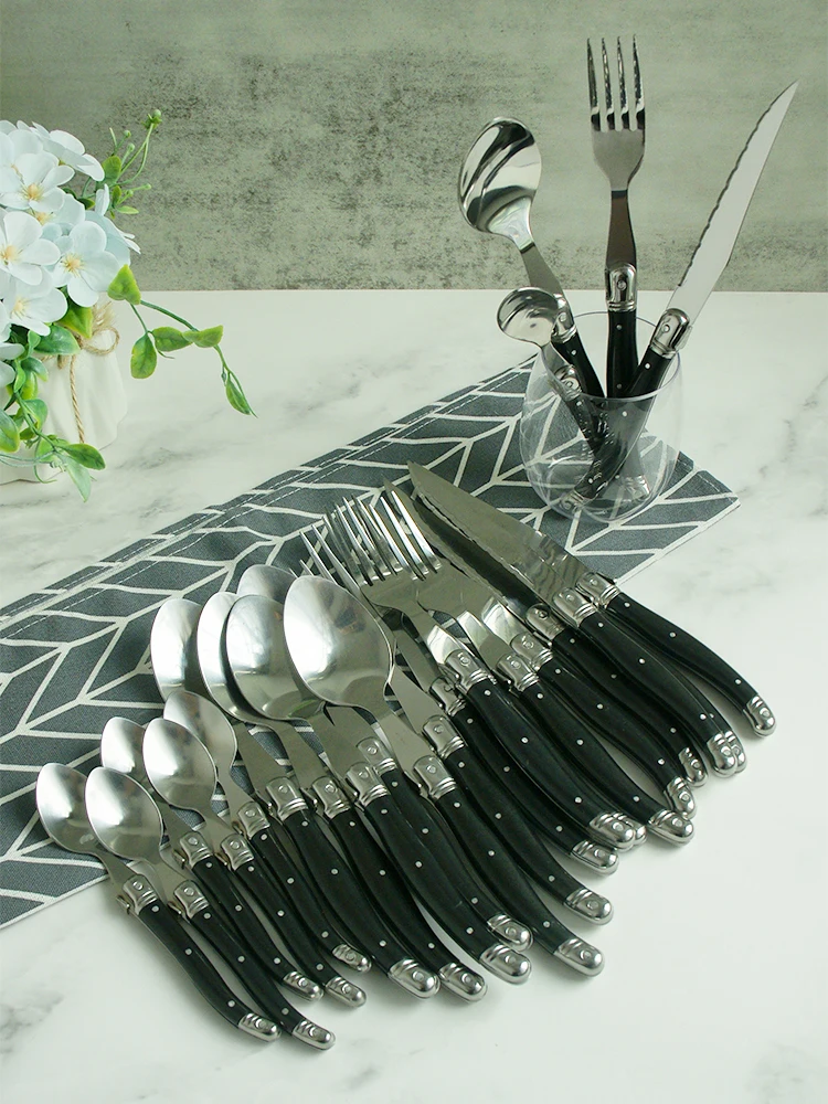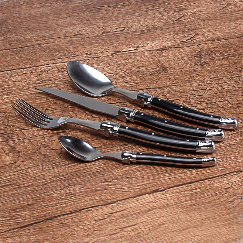 4-24 шт Laguiole черные столовые приборы из нержавеющей стали столовые приборы для ресторана набор посуды черная ручка из АБС столовый нож вилка чайная ложка наборы