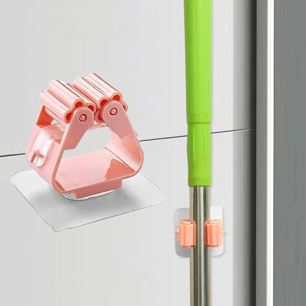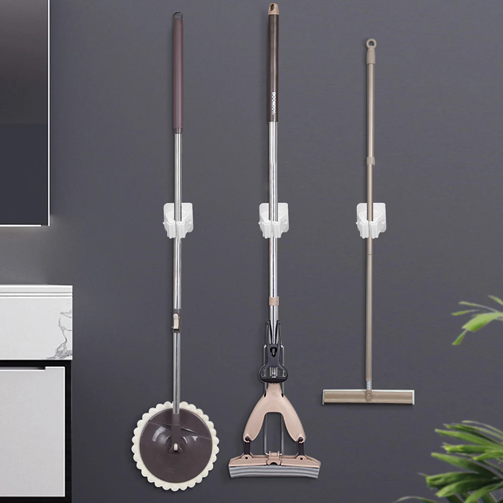 Multifunctional Self-Adhesive Wall Mounted Mop Clip Holder Seamless Broom Hanging Bracket Storage Racks Household Tools for Bathroom Kitchen