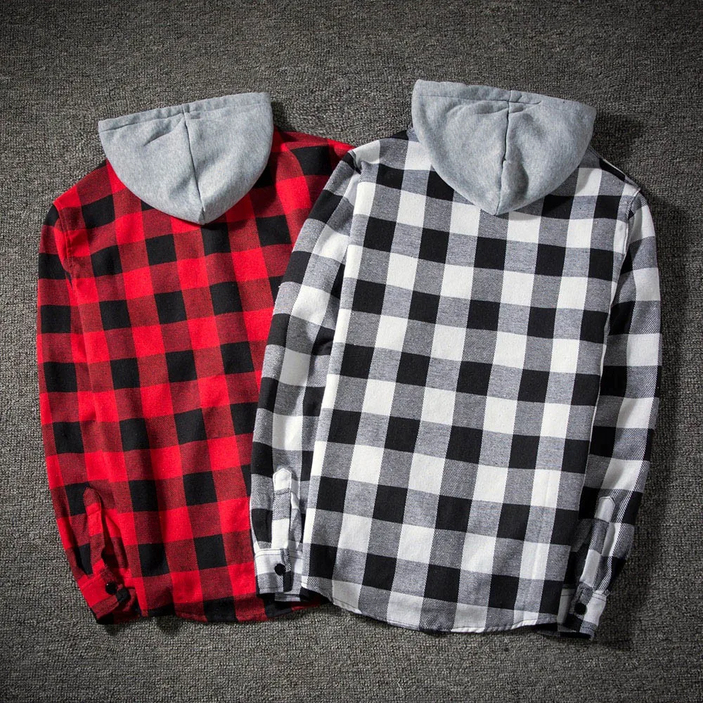 Мужская клетчатая рубашка с капюшоном в полоску, Повседневная модная рубашка с длинными рукавами и карманами, Высококачественная Мужская одежда