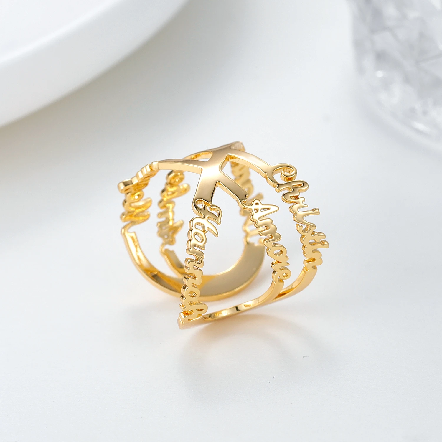 Персонализированное кольцо с именем Изысканная Золотая Серебряная р...