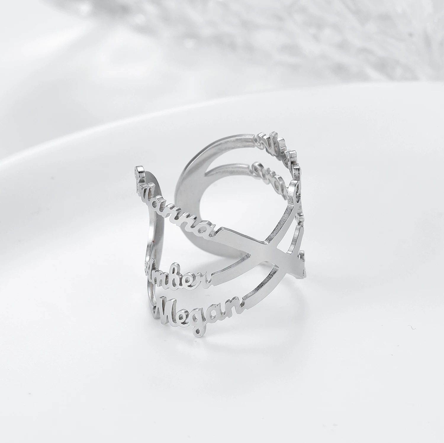 Кольцо Бесконечность с несколькими именами для подруги, жены, мамы, из нержавеющей стали