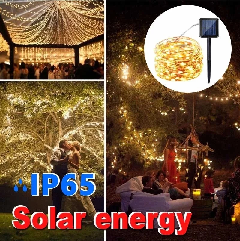 Водонепроницаемая уличная гирлянда на солнечной батарее, 12 м, 300 ...