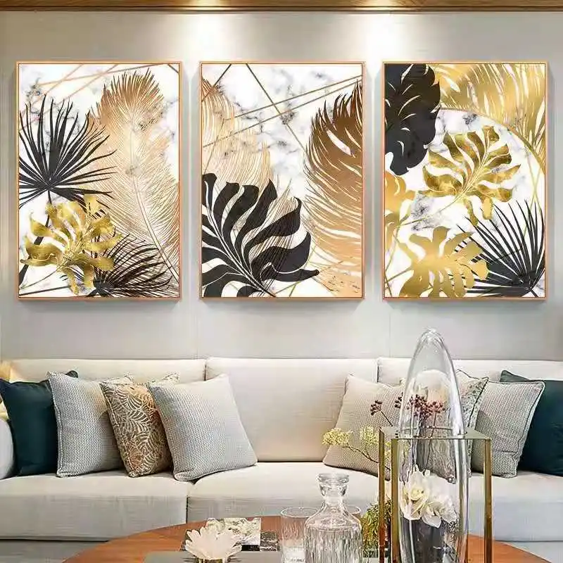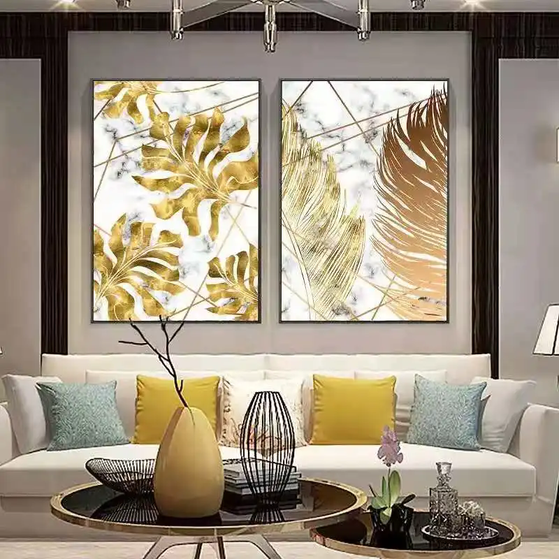 Роскошный современный мраморный золотистый лист в скандинавском стиле, украшение для гостиной, картина для спальни, столовой, картина на стену HD