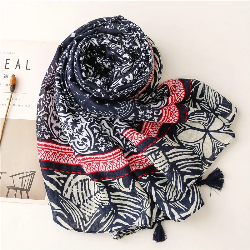 Шарф-Палантин женский из хлопка, с кисточками и цветами, шаль из ви...