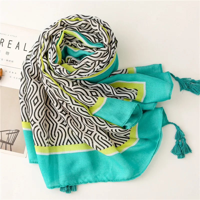 2021 модный ацтекский геометрический зеленый шарф из вискозы с кист...