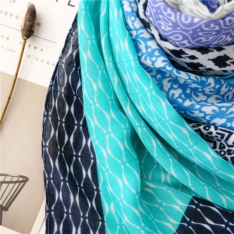 Модный ацтекский этнический геометрический лоскутный шарф из вискоз...