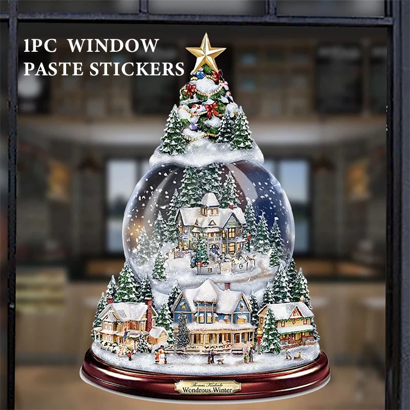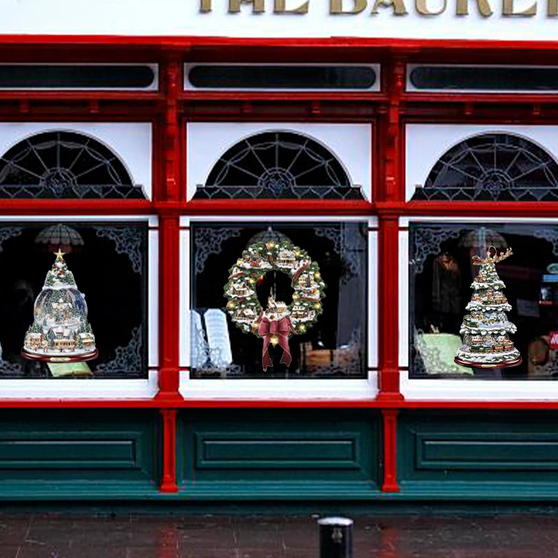 Рождественская елка, вращающаяся скульптура, Ранняя Наклейка на окно, наклейки, Рождественское украшение для дома, зимний домашний декор