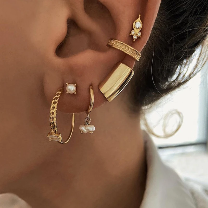 Серьги-гвоздики женские с-образной формы с разноцветными цирконами