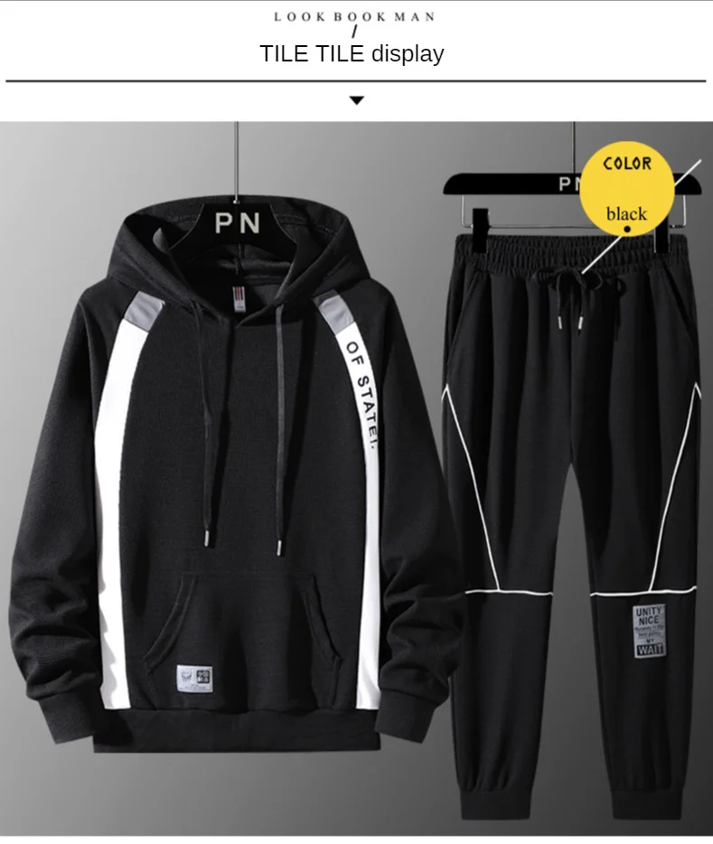 Мужской спортивный костюм из двух предметов, спортивный костюм с принтом в стиле пэчворк, спортивная одежда для студентов и мужа, 2021