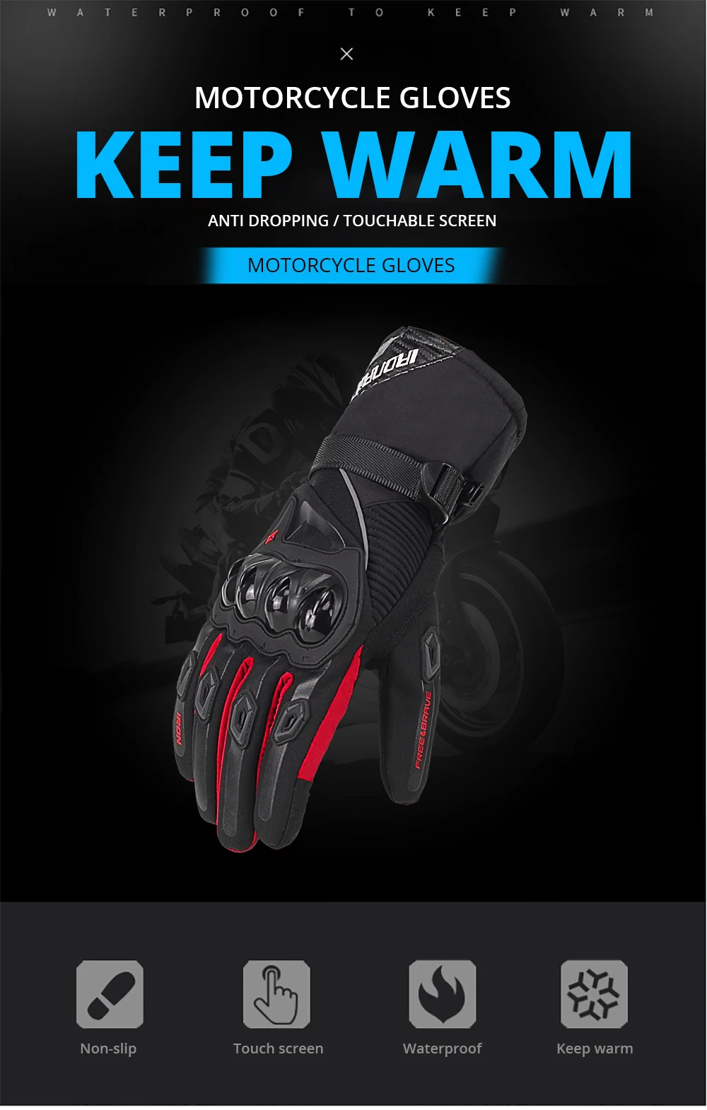 Мотоциклетные Перчатки Guantes, водонепроницаемые длинные перчатки с закрытыми пальцами, с защитой сенсорного экрана, из углеродного волокна, зимние