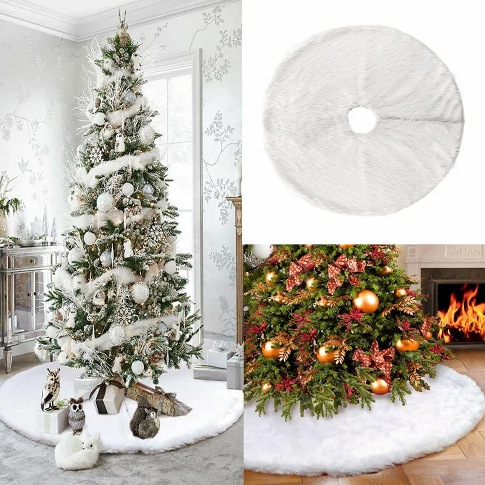 Белая юбка для рождественской елки, плюшевый ковер из искусственного меха для рождественской елки, украшения для рождественской елки, украшение для свадьбы, дня рождения, домашний декор