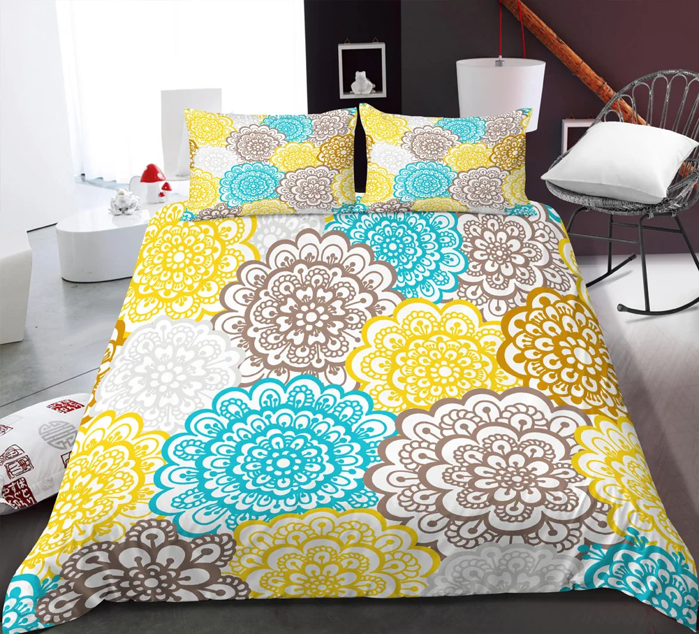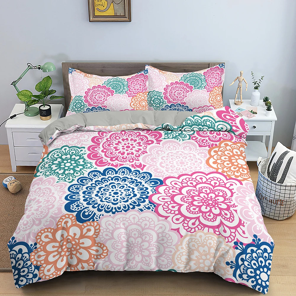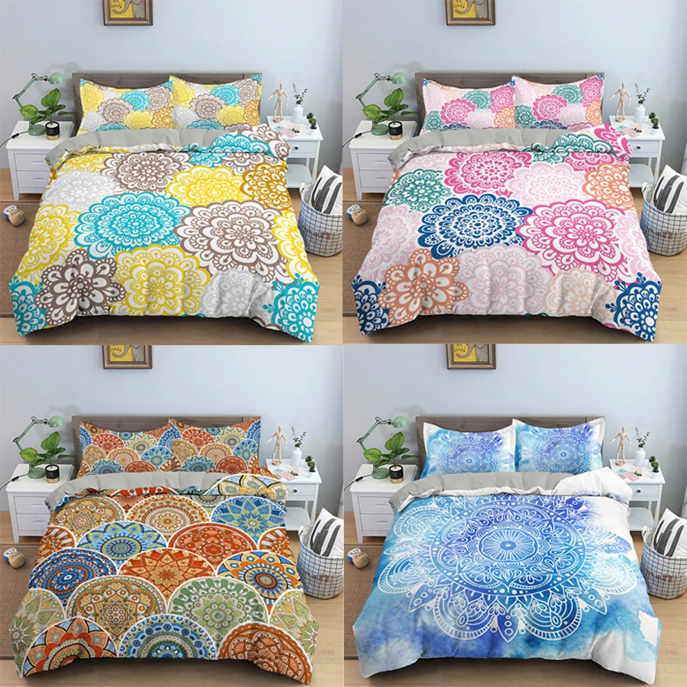 Комплект постельного белья с цветочным принтом мандала, пододеяльни...