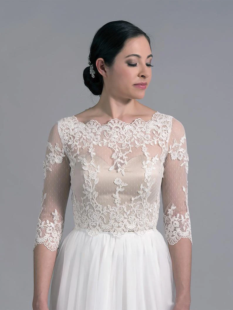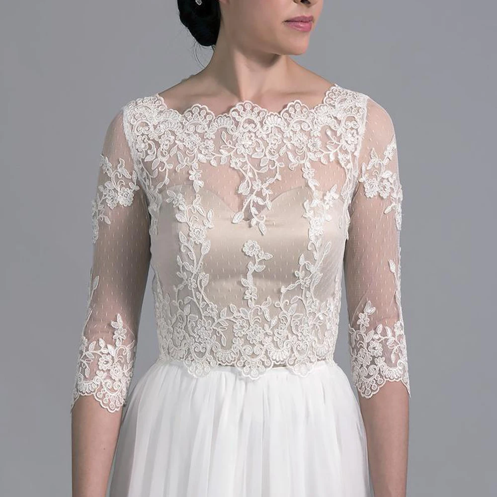 Свадебные Куртки с круглым вырезом, Свадебный Топ с длинным рукавом и кружевной аппликацией, свадебные аксессуары с пуговицами на заказ, 34