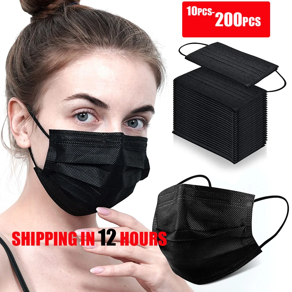 10-200 шт., одноразовые черные маски для лица, 3 слоя