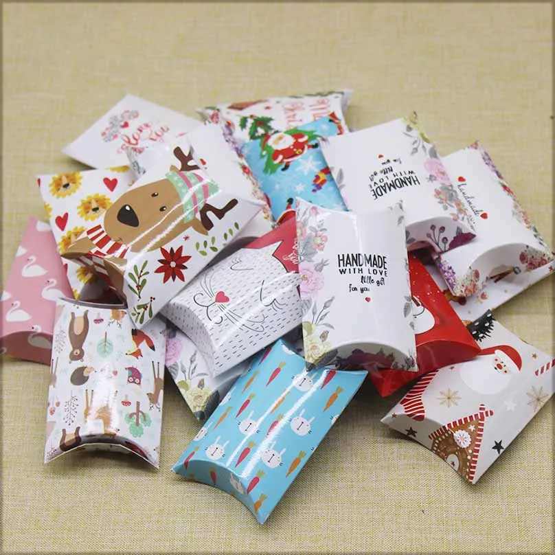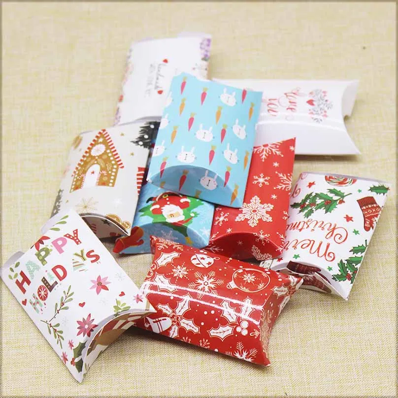 10 шт. Рождественская коробка из крафт-бумаги в форме подушки коробка для конфет рождественские подарки коробки для детей с новым годом 2021