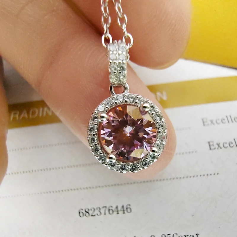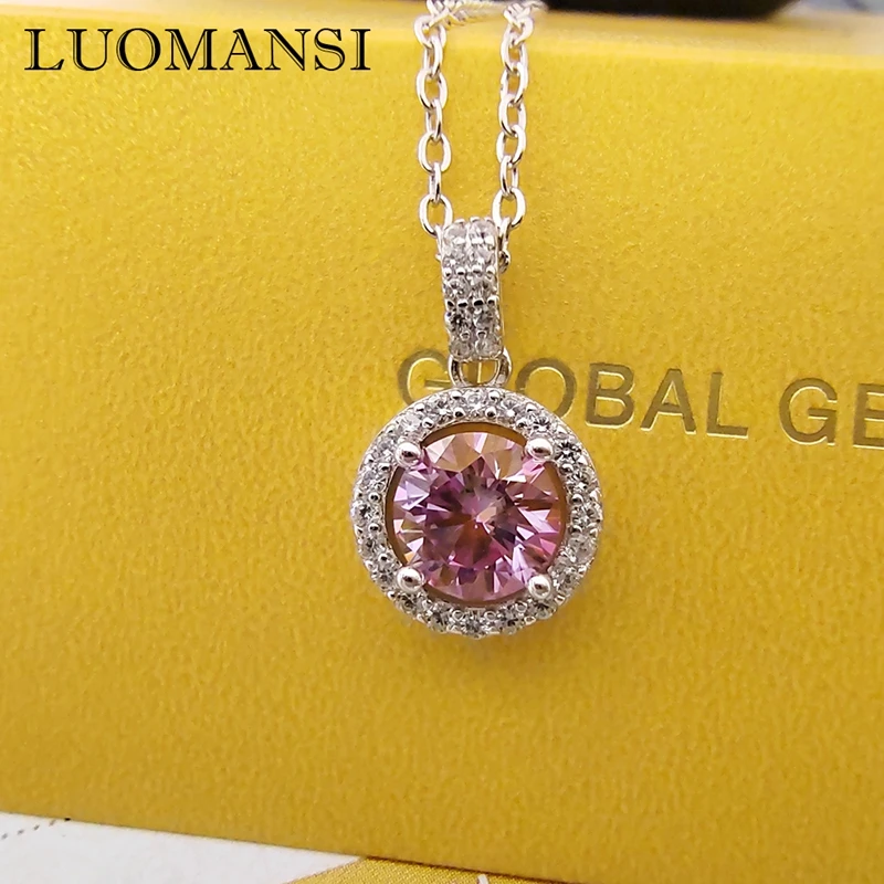 Luomansi реальный 1 2 3 карата 9 мм розовый Муассанит кулон ожерелье с сертификатом GRA Свадебная вечеринка женщина ювелирные изделия подарок