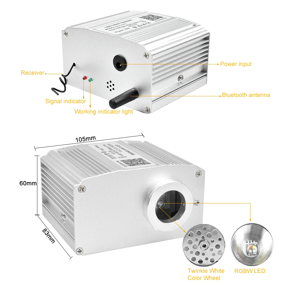 10 Вт RGBW Мерцающая волоконно-оптическая лампа двигатель Bluetooth дистанционное управление звездное небо источник светильник для спальни украшение автомобиля