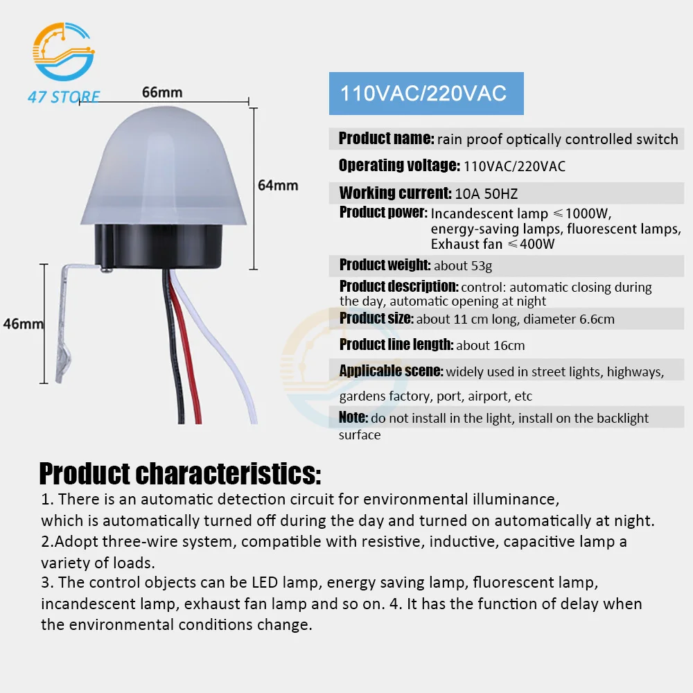 AS-20 DC 12V AC 110V 220V 10A водонепроницаемый чувствительный автоматический фотопереключатель Вкл/Выкл фотоэлемент уличный светодиодный переключатель света сенсорный переключатель