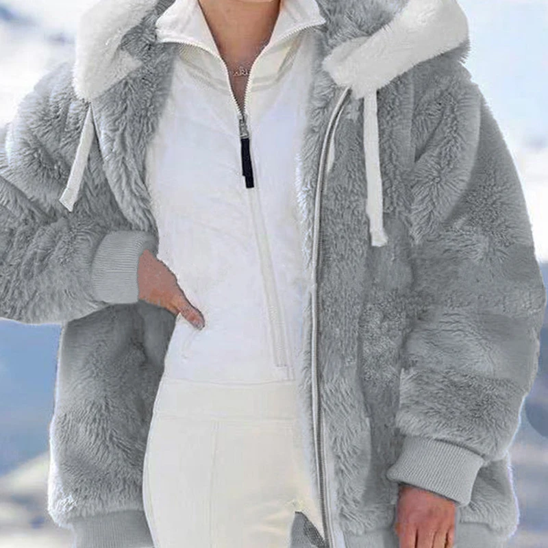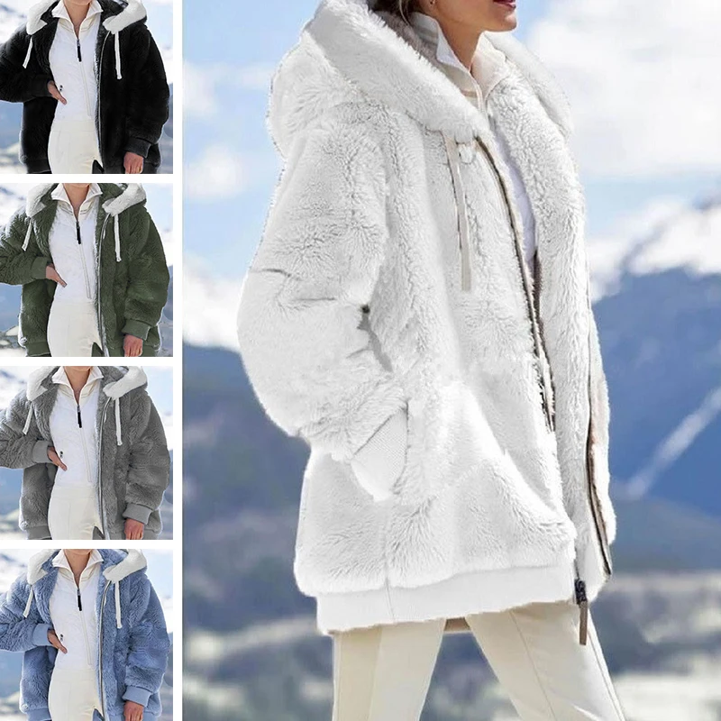 Женское зимнее плюшевое плотное теплое плюшевое пальто, пушистая куртка с капюшоном из искусственного меха, модная верхняя одежда, Женское пальто на молнии