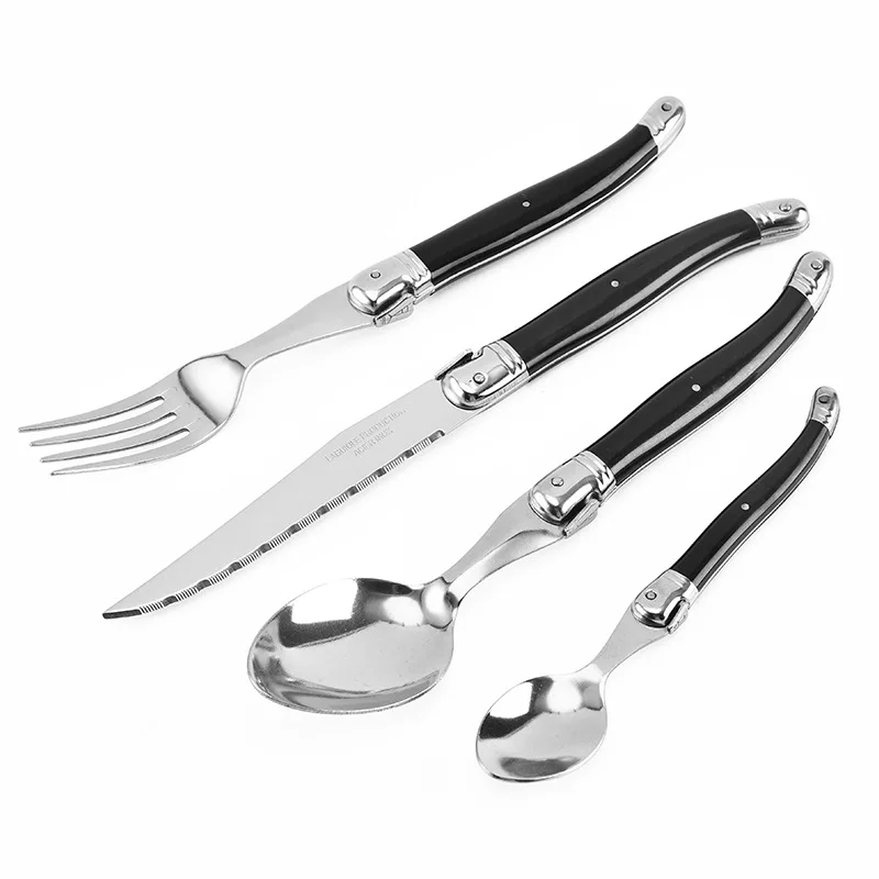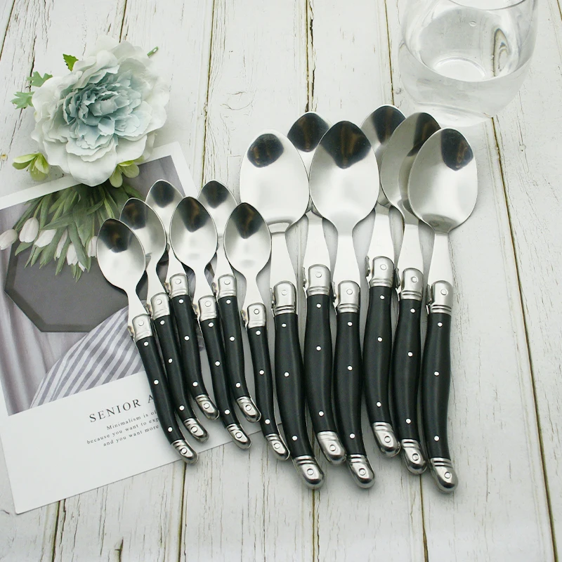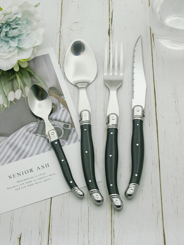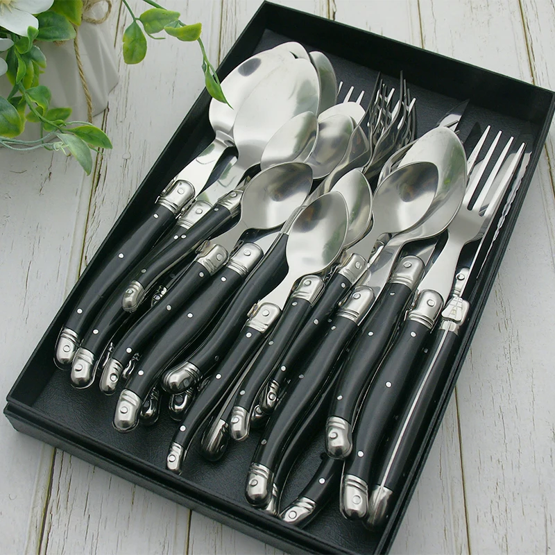 24 шт., набор посуды Laguiole, черная столовая посуда, столовые приборы, столовые приборы, АБС-пластик, нож для ужина, вилка, ложка, чайная ложка, рождественский подарок