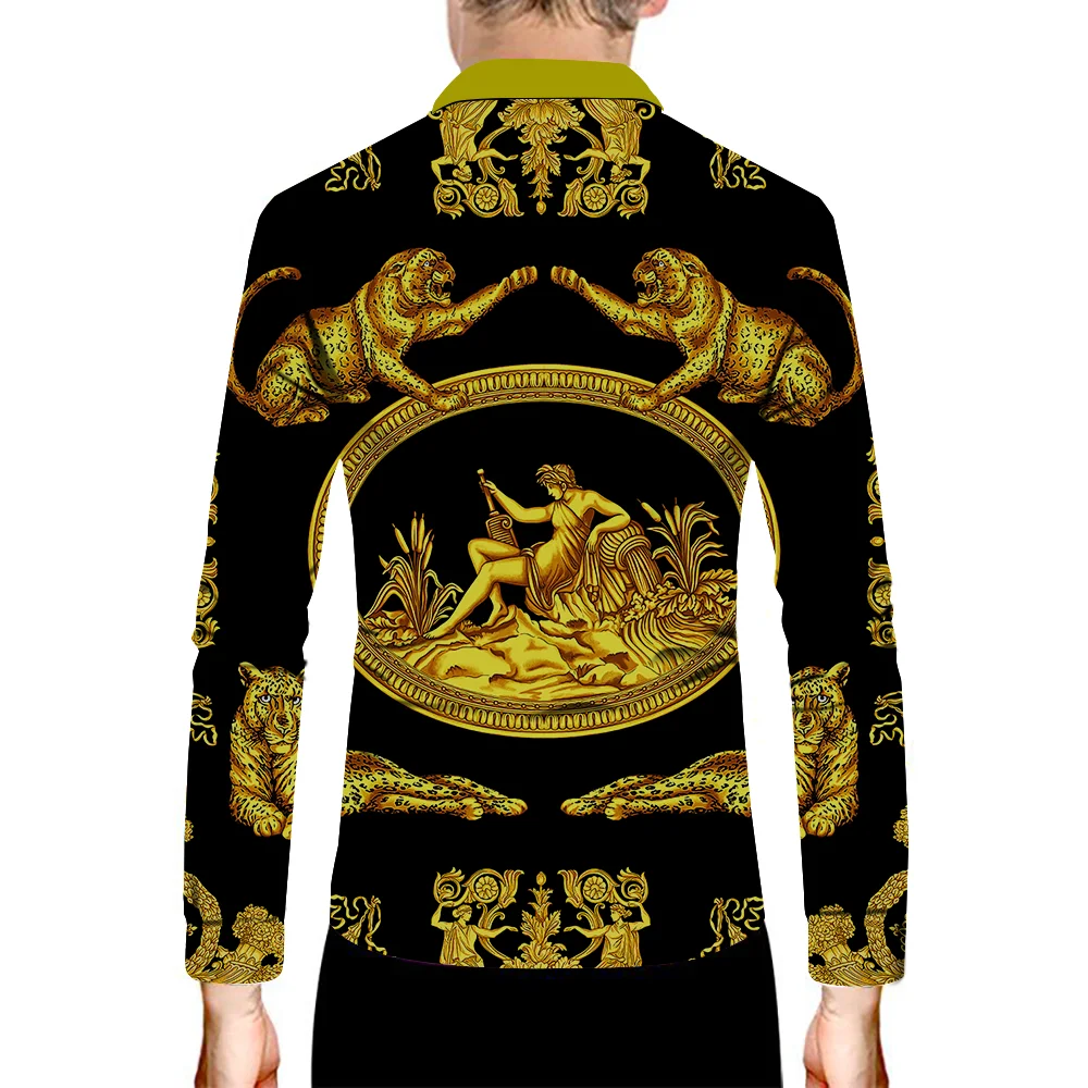 Рубашка мужская с длинным рукавом, топ в стиле барокко, цвет черный...
