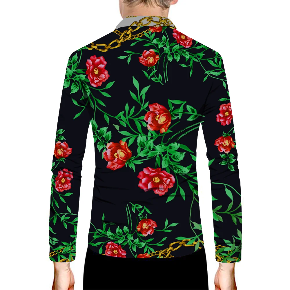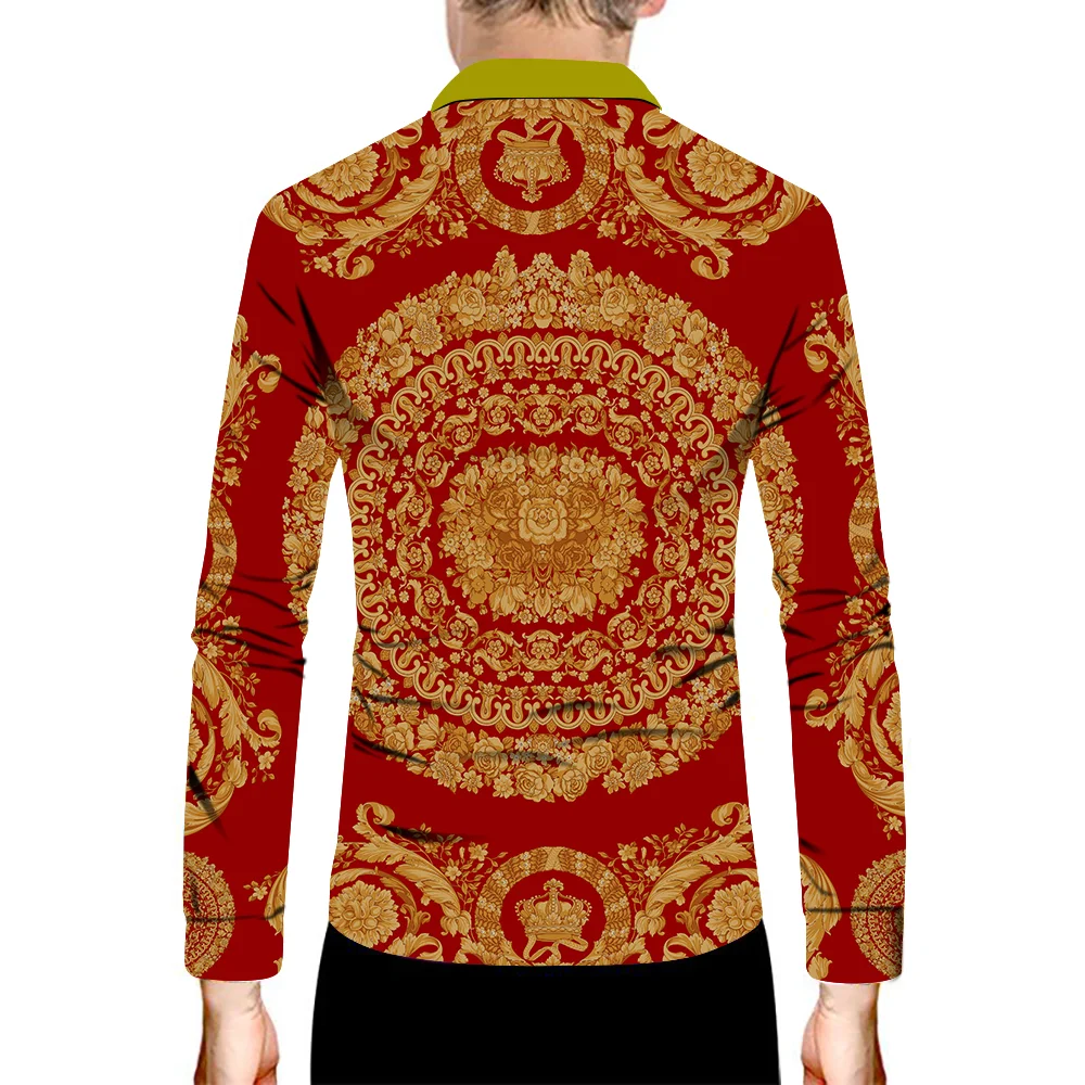 Мужская Повседневная рубашка, красная рубашка в стиле барокко, с дл...