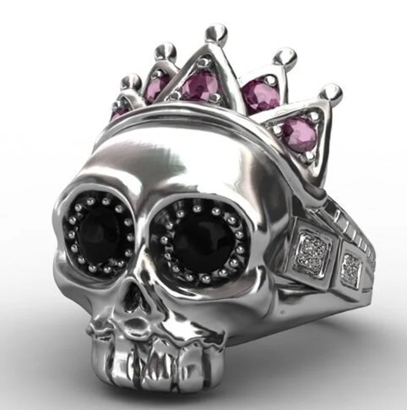 Кольца с кубическим цирконием в виде короны, черепа, кольца в готич...