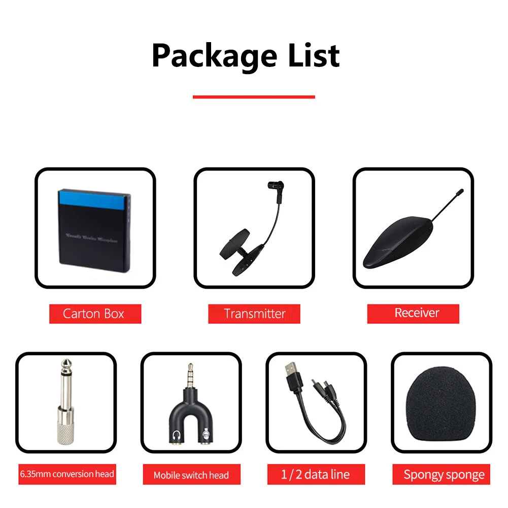 Профессиональный UHF безпроводный микрофон для саксофона, латунный инструмент, микрофонная система, приемник и передатчик для саксофона Sax, французского рога, трубного тромбонного кларнетаUHF безпроводный микрофон с приемником и передатчиком, которыйОсобенности: Автоматическое Сопряжение, передача УВЧ, стабильный сигнал и сильная способность анти-помех, очень прост и удобен в использовании. Подходит для ветровых инструментов, таких как саксофон, туба, корнет, рог, тромбон и кларнет.Особенности:Автоматическое Сопряжение, передача УВЧ, стабильный сигнал и сильная способность анти-помех.Встроенный конденсаторный микрофон высокой чувствительности для четкого извлечения голоса, обеспечивая четкое качество звука.Поставляется с двумя постоянного тока в постоянный преобразователи (6,35 мм конвертер & 3,5 мм Y-преобразователь) для более удобного использования.Через два разных преобразователя, он может работать с компьютером, мобильный телефон, громкий динамик, усилитель и т. Д.Поставляется с двойным зарядным кабелем для одновременной зарядки приемника и передатчика, экономя время зарядки.Легко использовать, подключать и играть, удобно носить.Широкое применение, подходит для ветроинструментов, таких как саксофон, туба, корнет, рог, тромбон и кларнет.Характеристики:Цвет: черныйДиапазон передачи: >30 мЧастотная характеристика: 30 Гц-18 кГцОтношение сигнал-шум: 96 дБПолное Искажение: <0.1%Динамический диапазон: 96 дБМощность передатчика: 10 мВтЧувствительность приемника: -96 дБПерезаряжаемые-батарея Ёмкость (приемник и передатчик): 3,7 V 400mAhВремя работы: 5 часовВремя зарядки: 2 часаВходное напряжение: 5 ВРазмер посылка: 215*210*35 мм/8,46*8,27*1,38 дюймаПосылка Вес: 500g / 1.10lbПримечания:1. Эта микрофонная система УВЧ должна использоваться с аудио или громкоговорителем для самой системы не может звучать.2. Если аудиоустройство имеет разъем для микрофона или аудиовход, вы можете подключить приемник и включить, и он будет автоматически подключен и звучать.Посылка:1 * передатчик1 * приемникКонвертер 1*6,35 мм1*3,5 мм Y-конвертер1 * двойной зарядный кабель1 * Sprayproof губка# MusicalInstruments # musictool # развлечения # Запчасти и аксессуары # clarinetaccessorie # woodwindinstrument # sportsentertainment # Professional # windinstrument