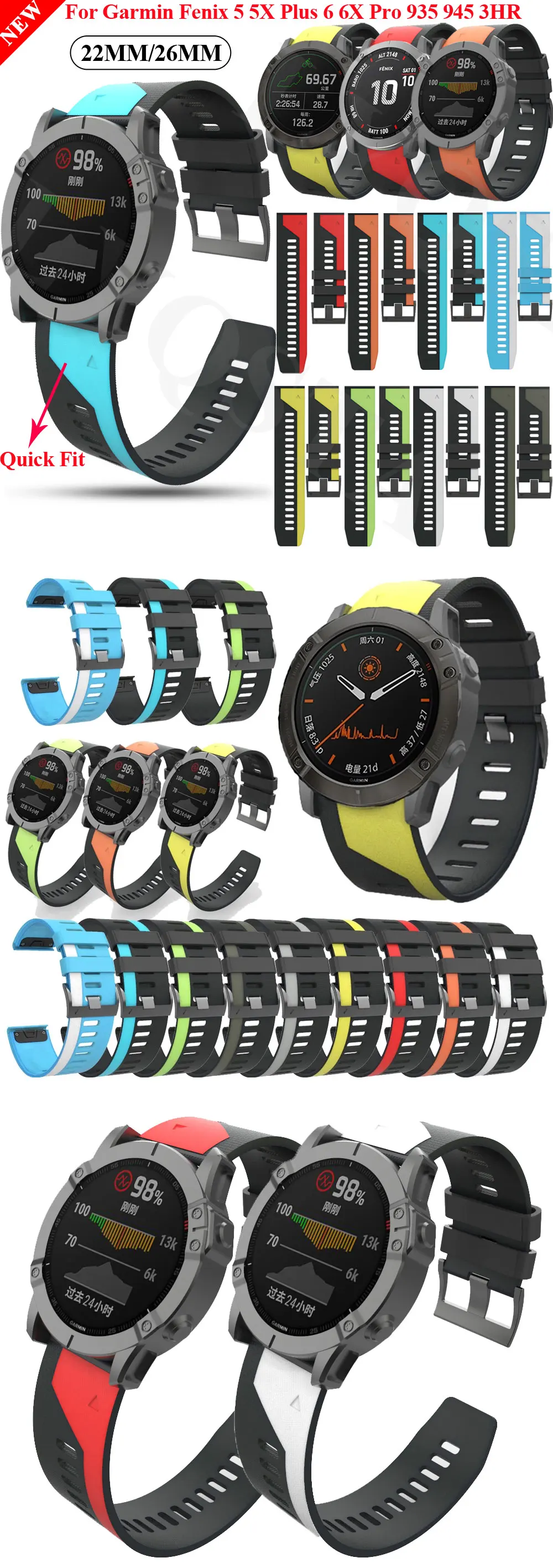 Ремешок для наручных часов Garmin Fenix 6X, 6X Pro, 5X, 5 Plus, 3HR...