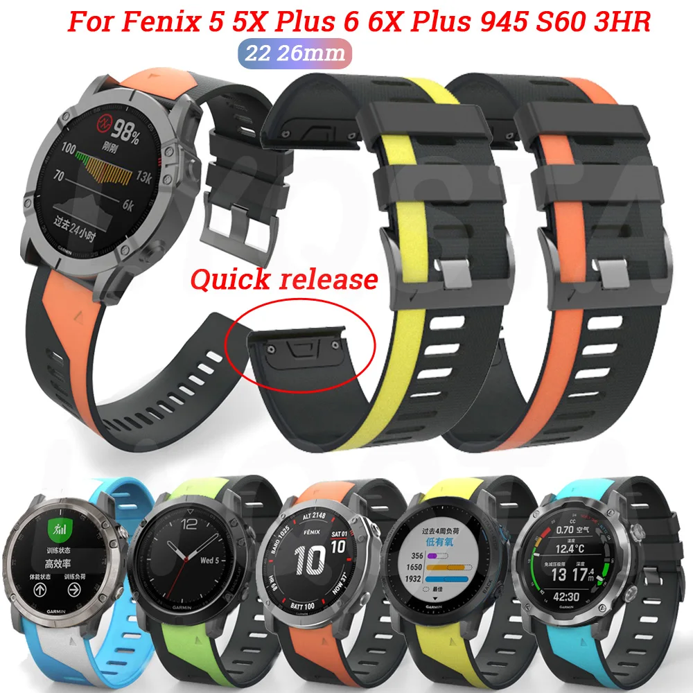 26 22 мм ремешок для часов для Garmin Fenix 7 7X 6 6X Pro 5 5X Plus 935 3HR Enduro Mk2 D2 силиконовый быстросъемный браслет
