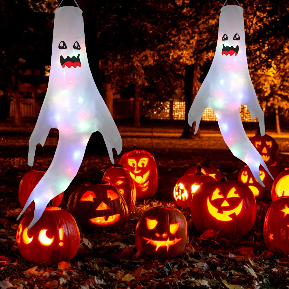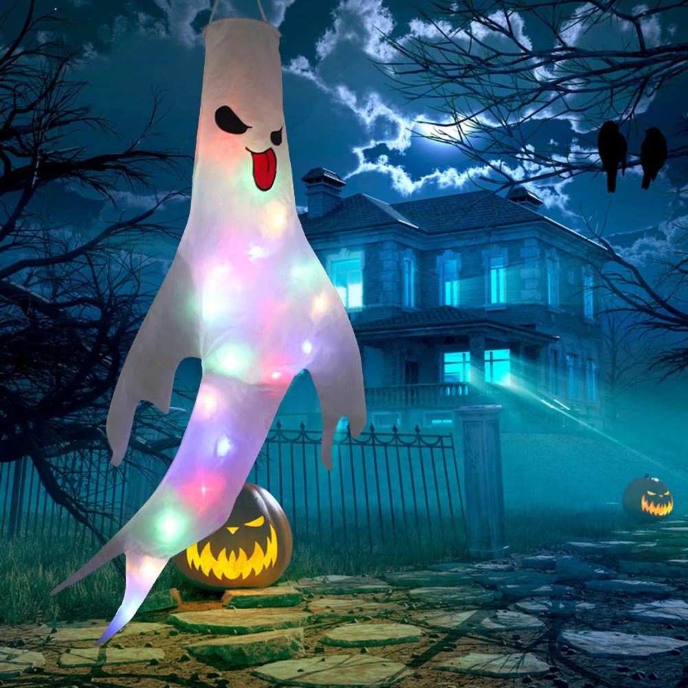 Украшение на Хэллоуин, светящиеся ветряные носки, висячие украшения, ужас, светящийся призрак, освещение, уличное дерево, кулон, вечерние, декоративные реквизиты