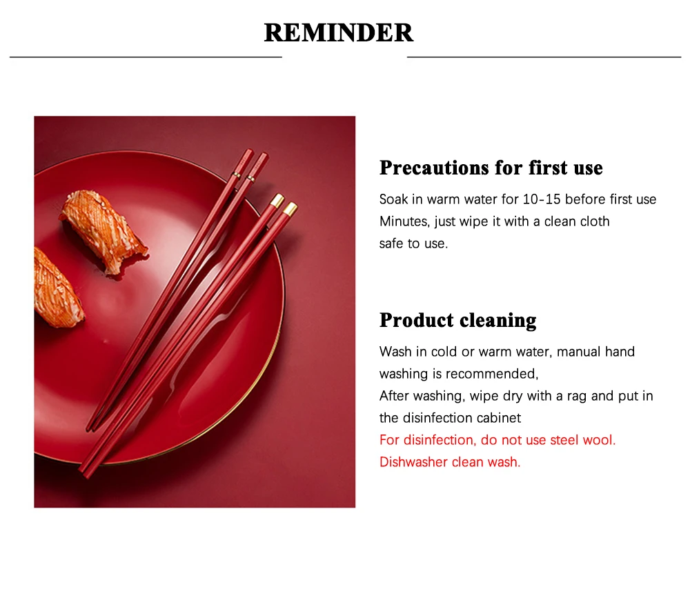 Длина: 24,3 смЦвет: черный/зеленый/красныйМатериал: сплавКоличество: 5 парПосылка включает:5 пар палочек для еды (Opp пакет посылка)Особенности:<Нескользящие: эти палочки для еды имеют противоскользящий дизайн. Усиленный нескользящий наконечник для палочек делает палочки для еды легче захватывать еду и лучше не скользить. Палочки для еды с текстурированным корпусом удобнее в использовании и удобнее держать под рукой. Палочки для еды не скатываются на руку.<Безопасный Материал: Изготовлен из высококачественного сплава, износостойкий, высокотемпературный, нелегко сломать. Они не будут скрывать грязь<Легко чистить: они не скрывают грязь, не впитывают воду, не впитывают влагу, легко и удобно моются.<Прочный: многоразовые палочки для еды, которые не беспокоятся о повреждении во время использования или чистки<Легко чистить: можно чистить холодной водой или теплой водой, рекомендуется ручная стирка, протирать тканью после очистки и дезинфицировать их стерилизованным шкафом.<Широко используется: обязательный предмет для еды типичной азиатской пищи, такой как суши, рамен, горячий горшок, кунг ПАО курица, пельменей, рис и другие продукты питания.Конечно, вы также можете использовать его, чтобы сделать ежедневную еду как спагетти.<Идеальный подарок: идеальный подарок для ваших друзей или семьи на любой случай.Теплые советы:<Не мойте стальную шерсть и посудомоечную машину.