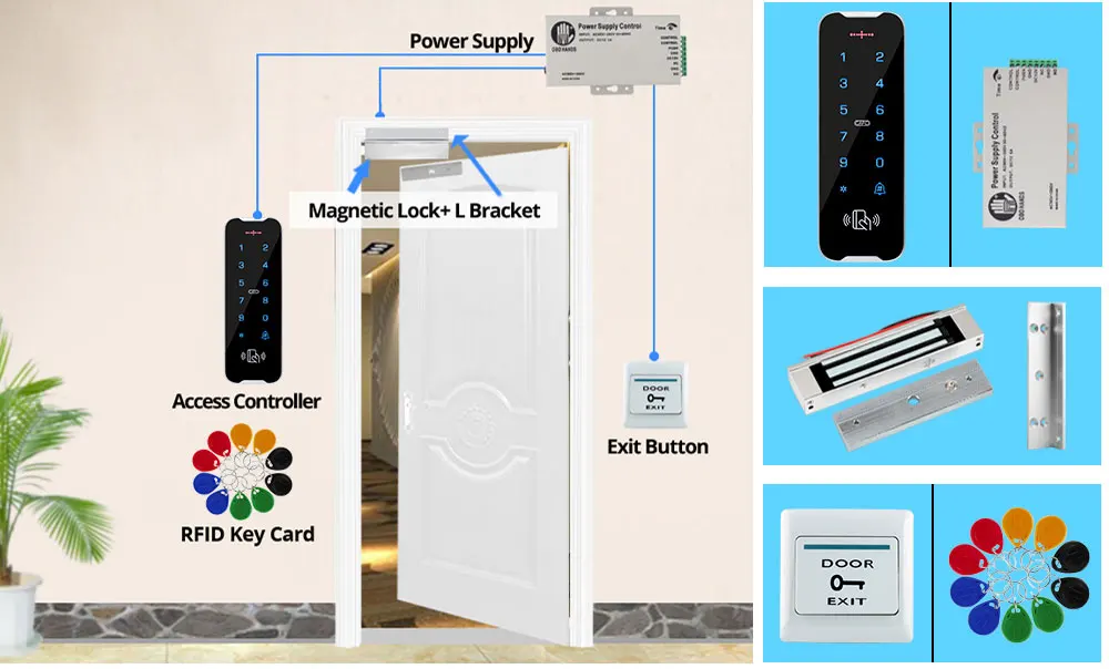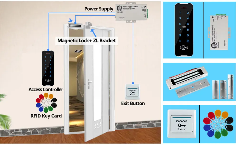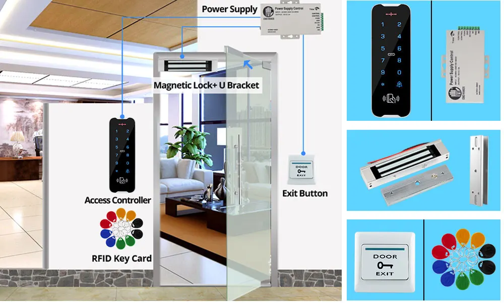 RFID система контроля допуска к двери комплект IP68 Водонепроницаемая RFID Клавиатура + источник питания + 180 кг Электронный магнитный замок