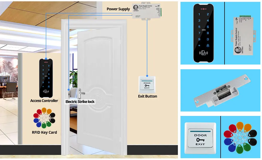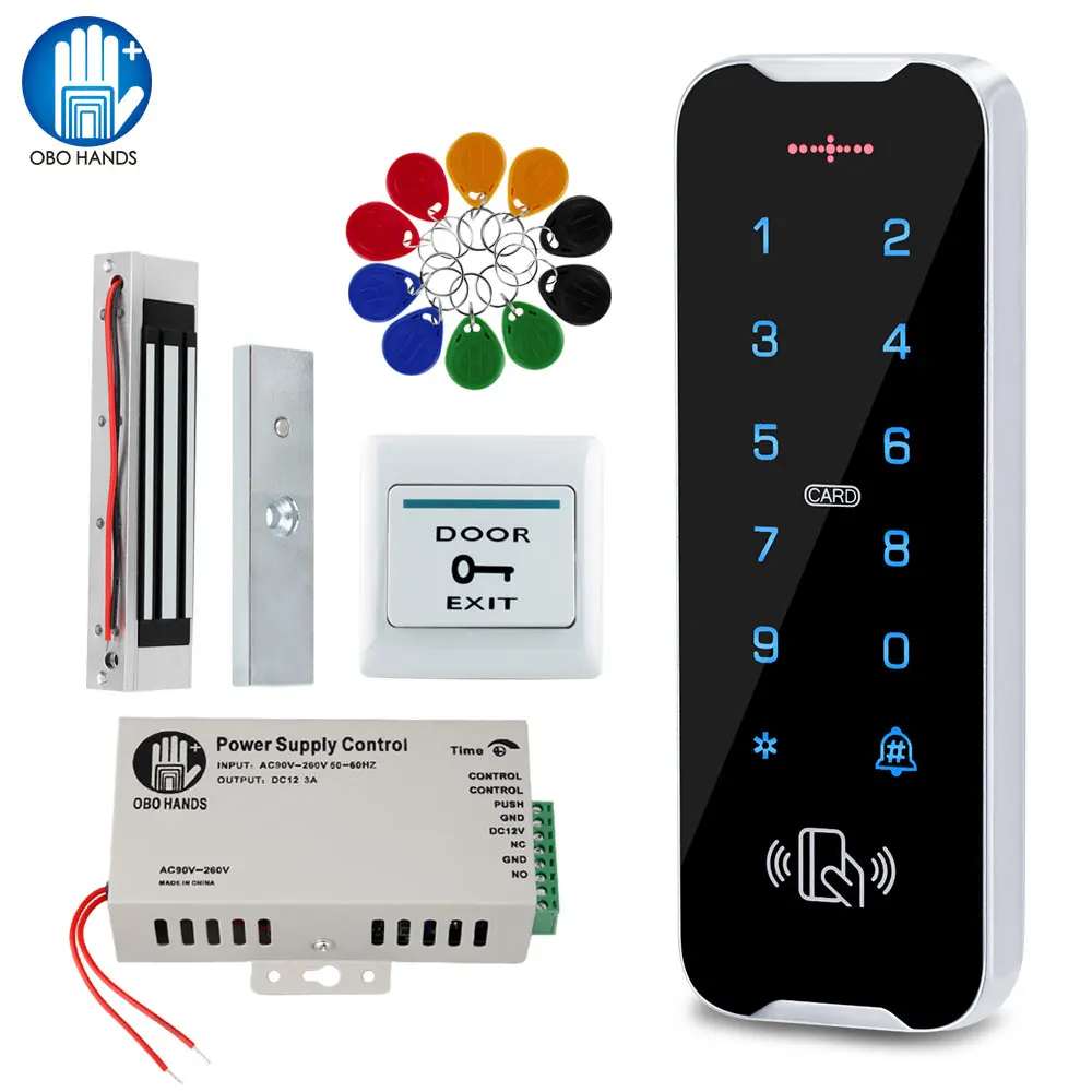 RFID система контроля допуска к двери комплект IP68 Водонепроницаемая клавиатура RFID + блок питания + электронный магнитный замок 180 кг