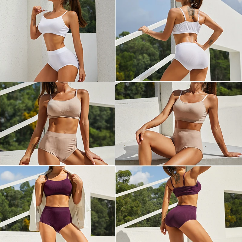 Трусики женские FINETOO, бесшовные, с пуш-ап, с высокой талией, для активного фитнеса, набор белья, бюстгальтер, S-2XL