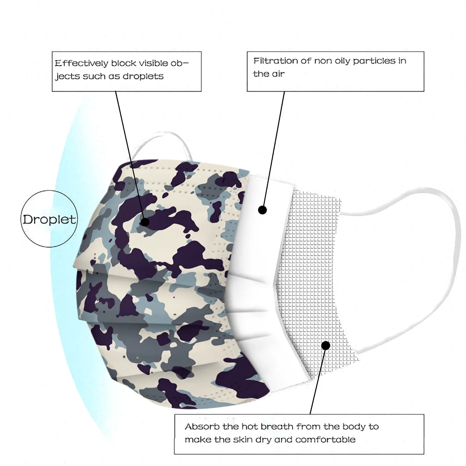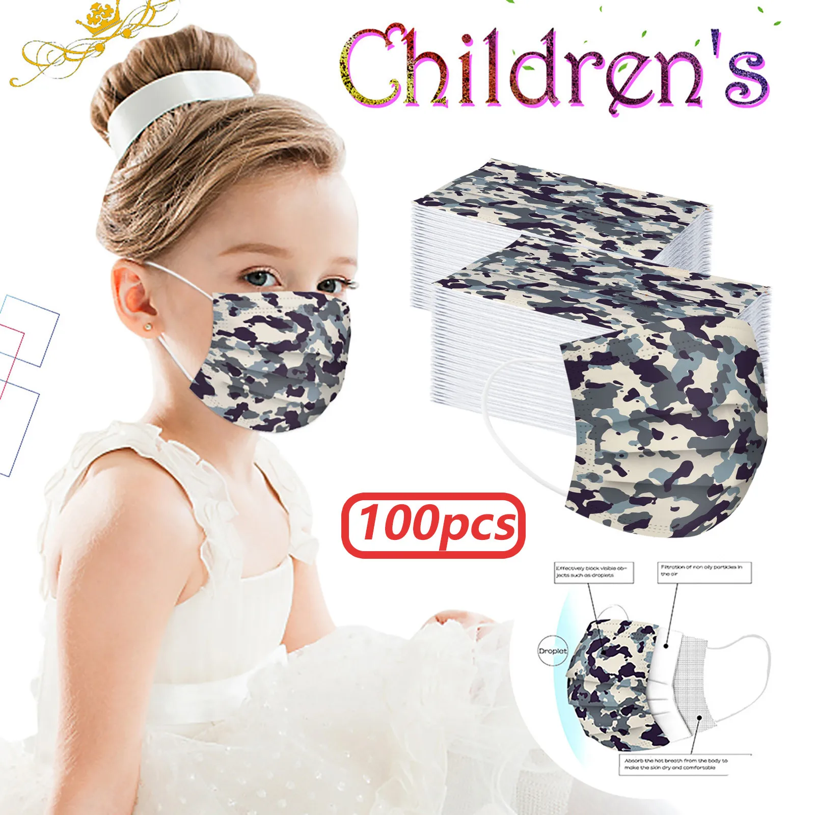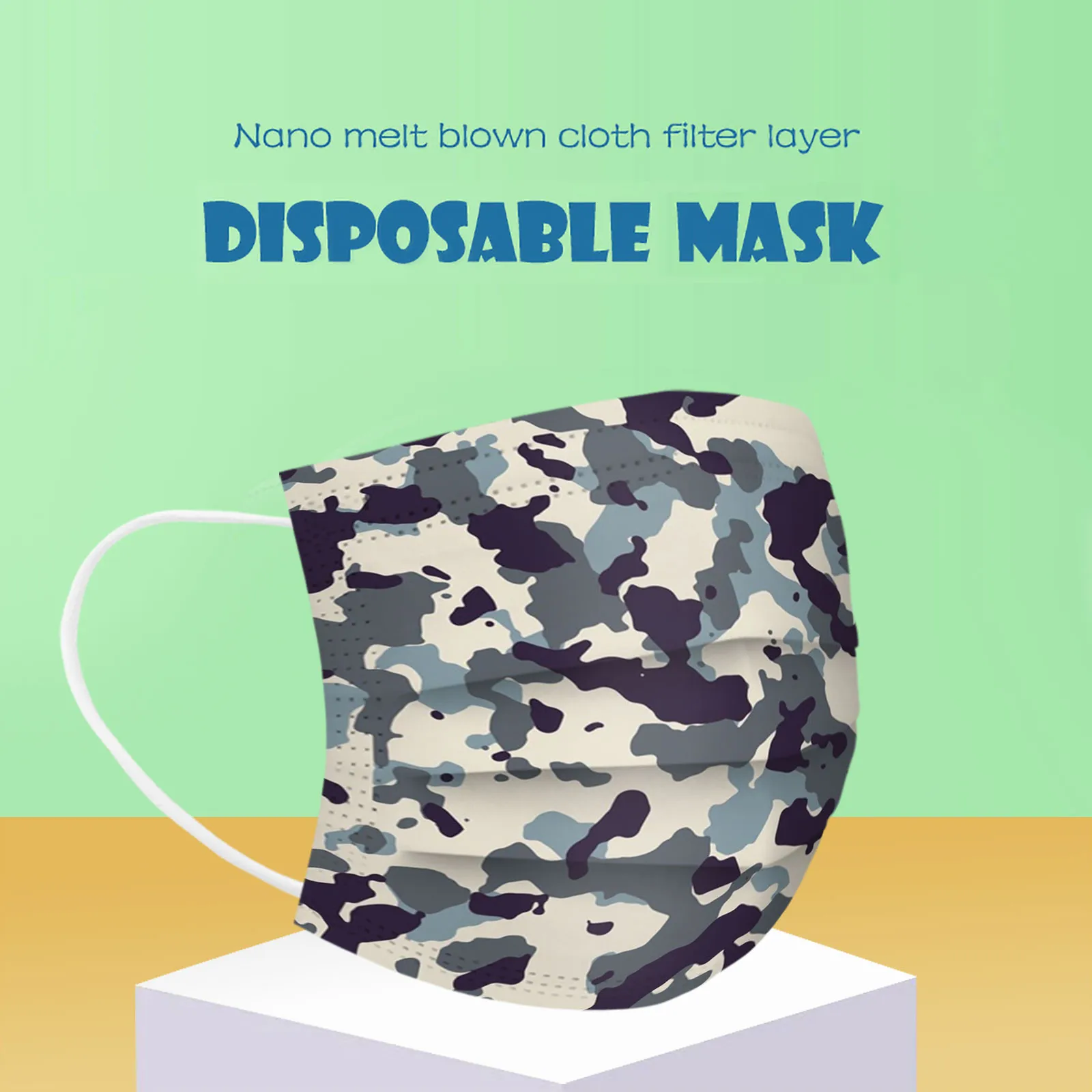 Camo-одноразовые Face_mask для Детское 3-слойное, дышащие детские Face_Mask с камуфляжным принтом маска
