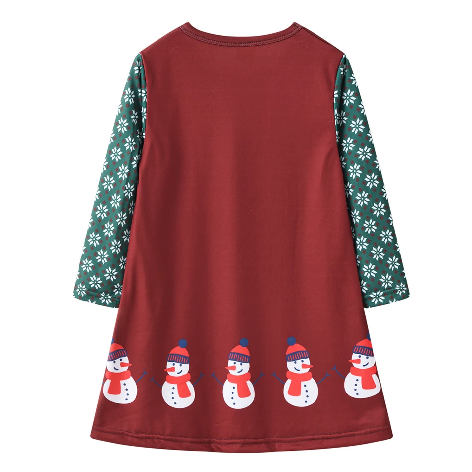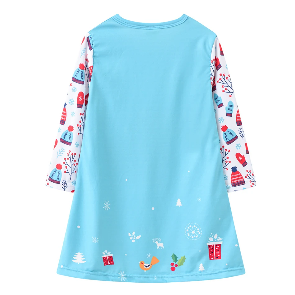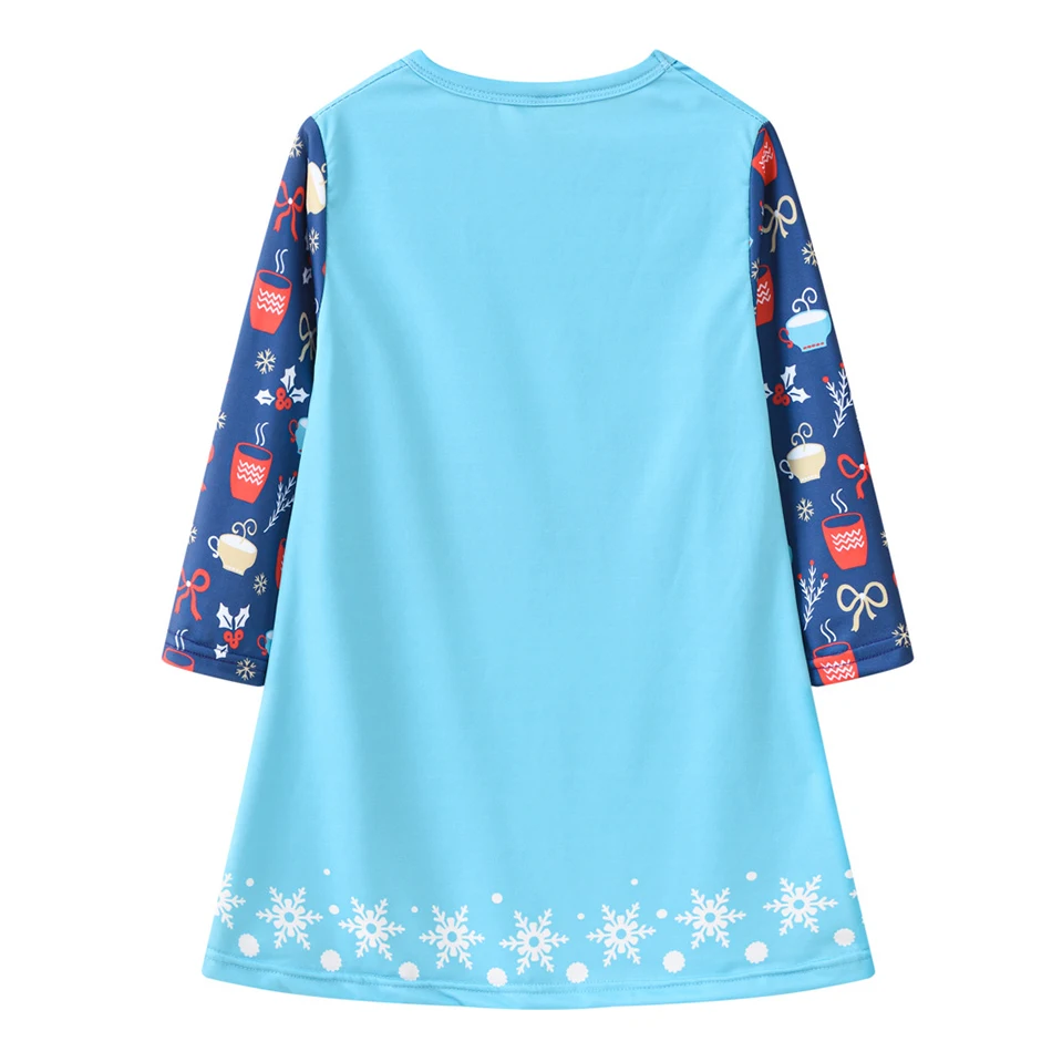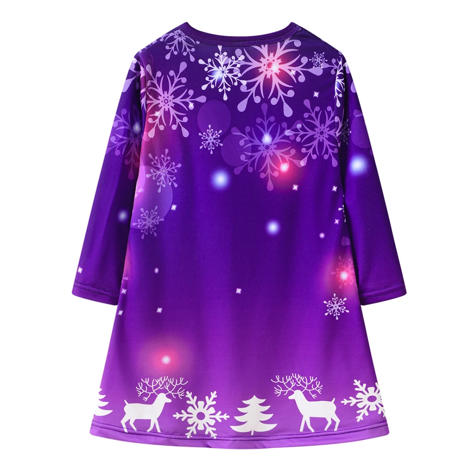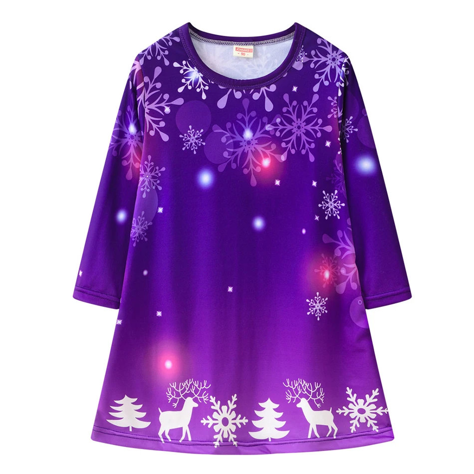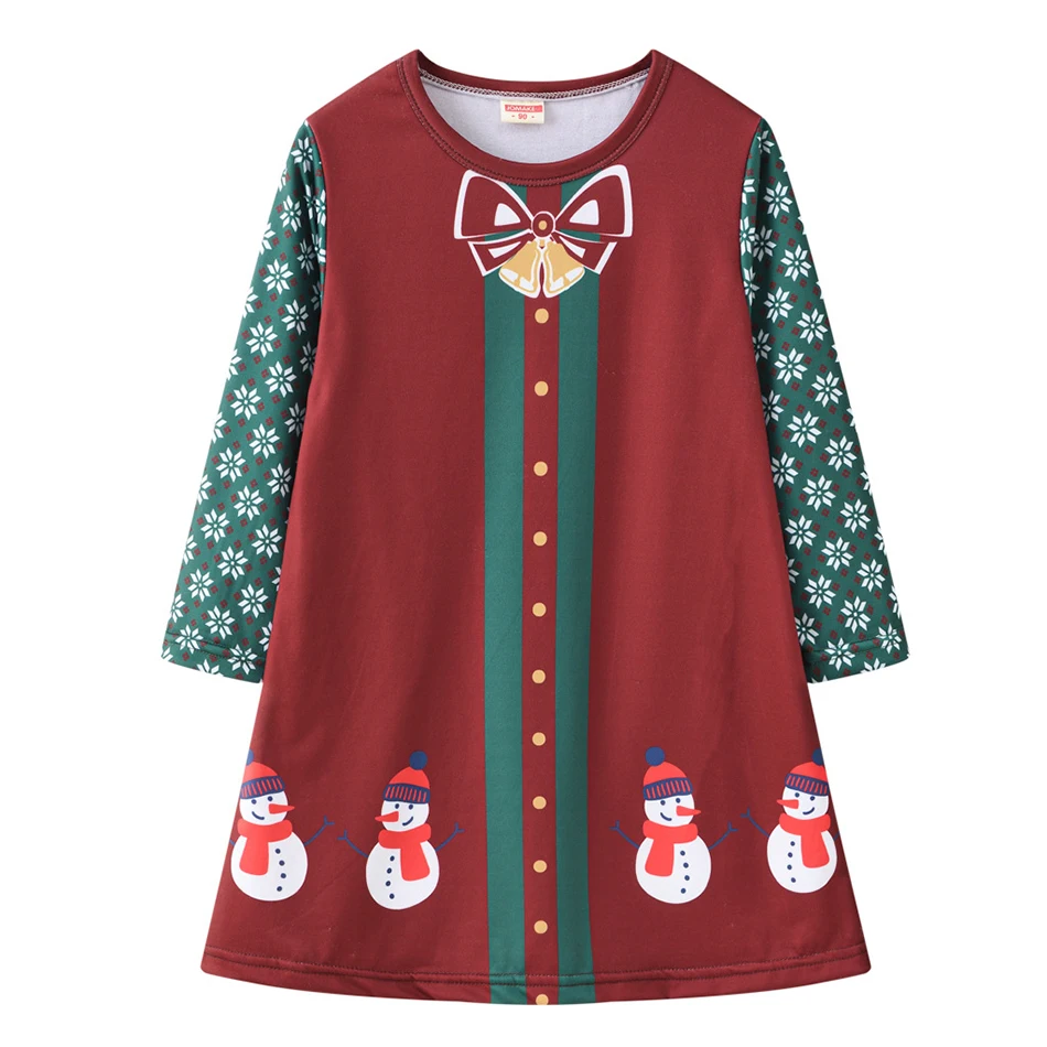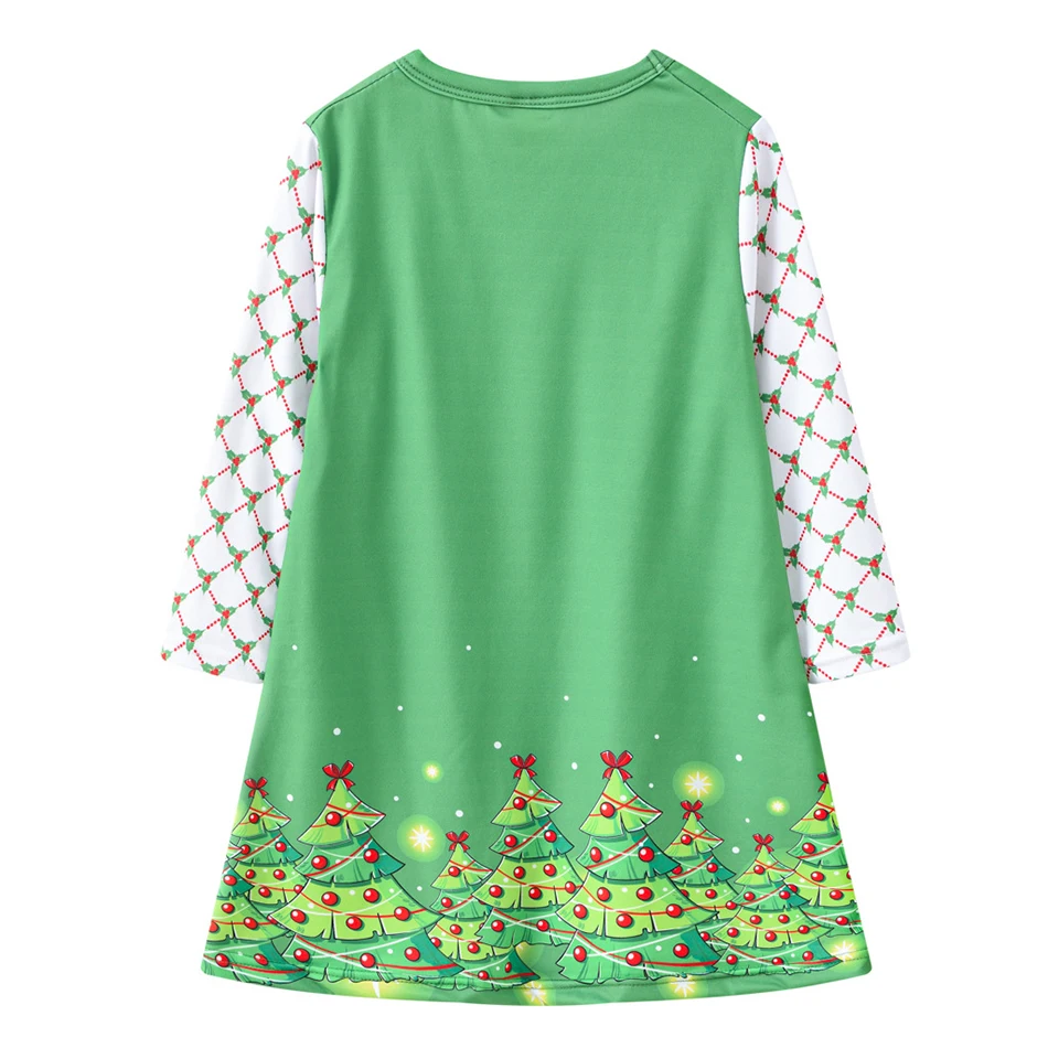 Рождественское платье для девочек, детская одежда с длинным рукавом, платье с принтом рождественской елки и Санта-Клауса, одежда для вечевечерние НКИ, карнавала