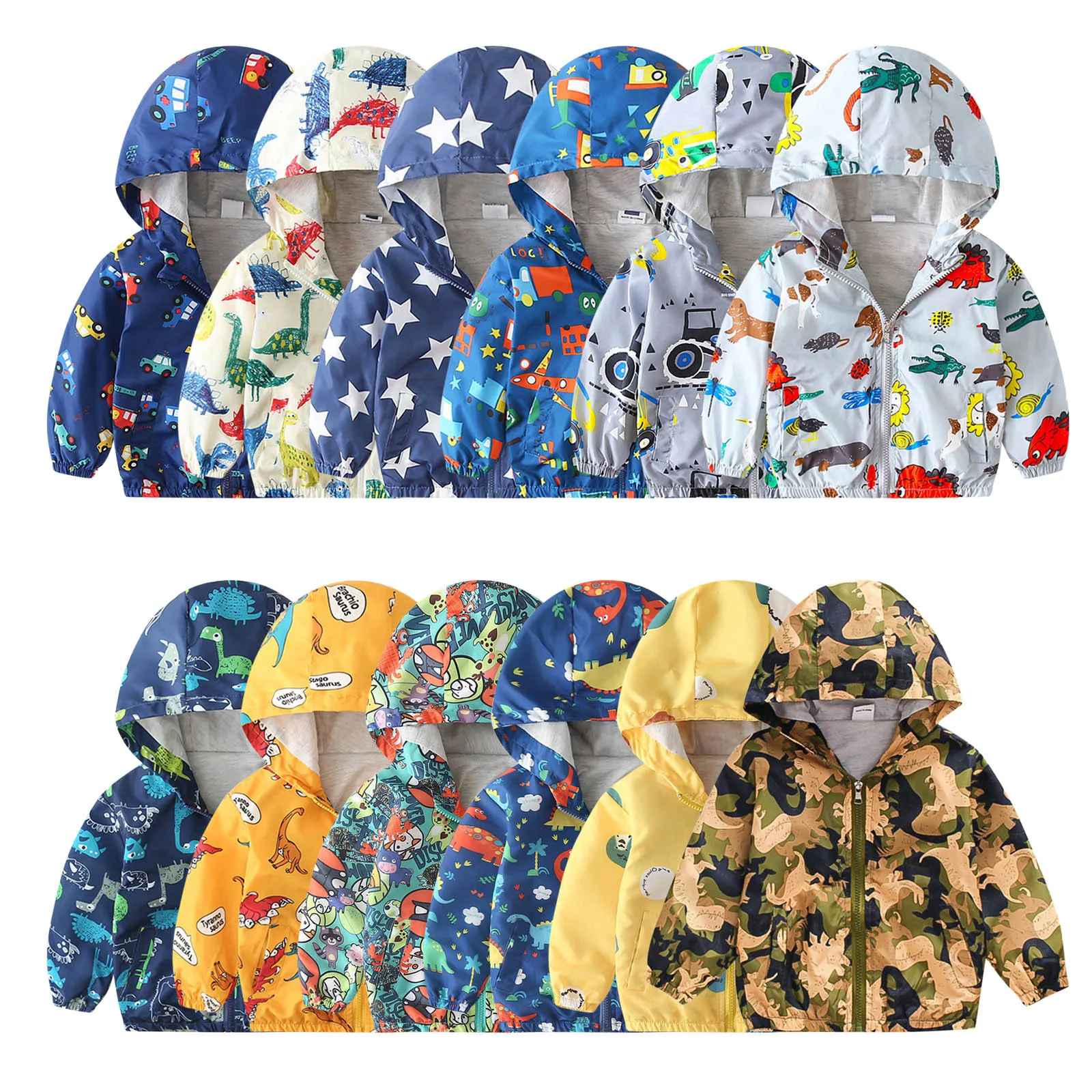 Малыша Одежда для детей; малышей; девочек для мальчиков мультфильм Динозавр куртка с капюшоном и застежкой-молнией ветрозащитное пальто ветровка верхняя одежда