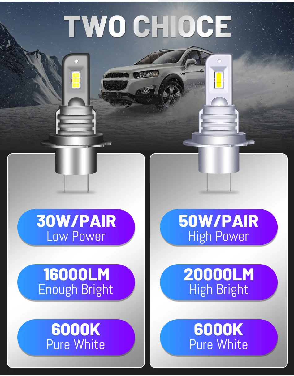 2 шт., Автомобильные светодиодные лампы H7, 50 Вт, 9005 лм, 9006 К,...