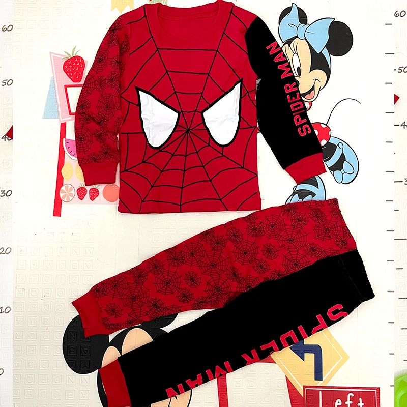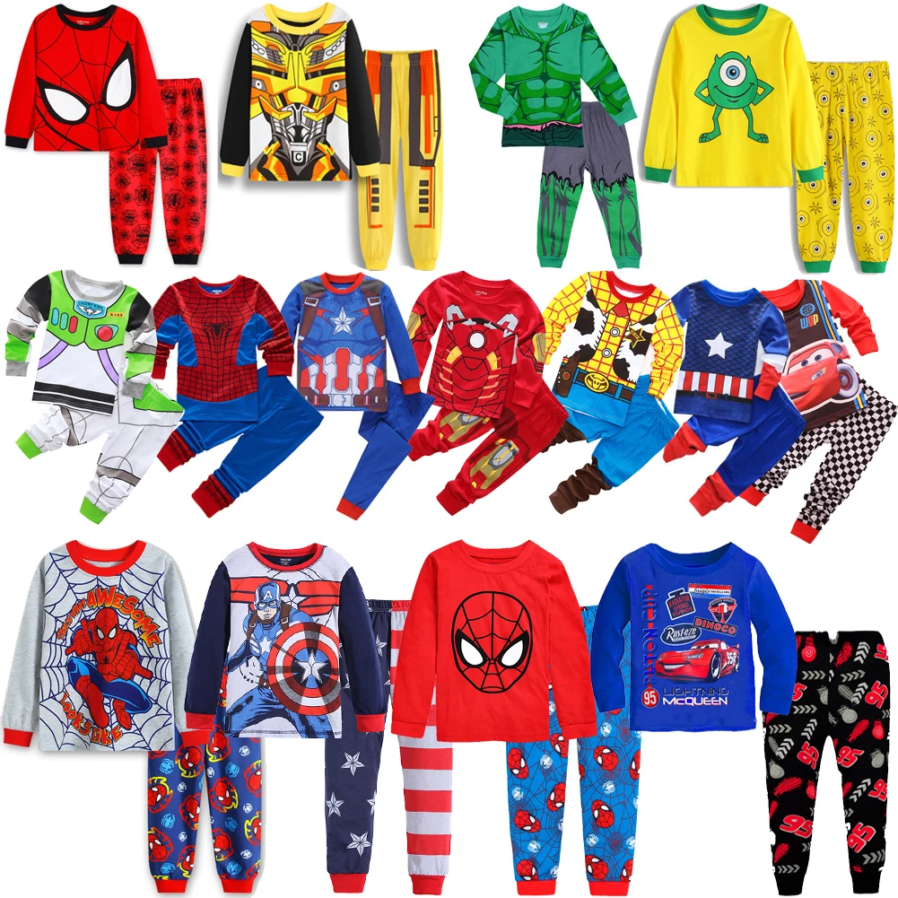 Новинка, комплекты детской одежды на весну и осень, одежда для сна для мальчиков, детский пижамный комплект с пауком, Хлопковая пижама с рисунком машинок для маленьких девочек