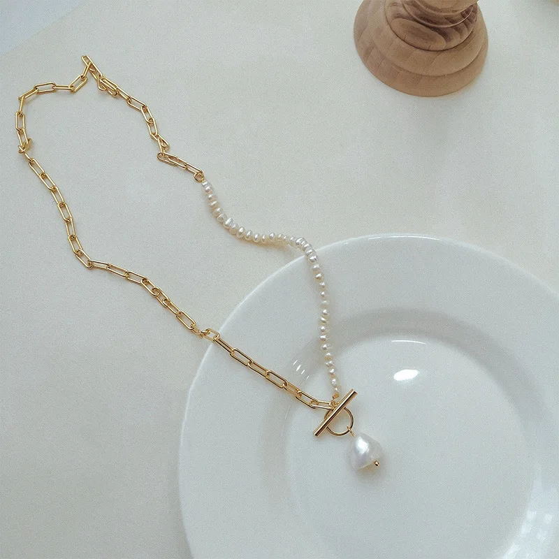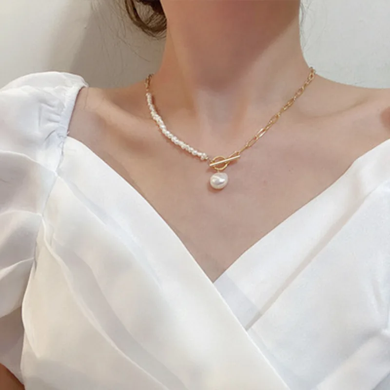 Жемчужное ожерелье POPACC, сращивающаяся цепочка, женское простое темпераментное модное ожерелье с жемчужной пряжкой, Женская цепочка до ключиц
