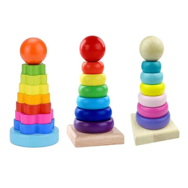 Деревянная Радуга башня Радуга Укладка Кольца игрушка Классический укладчик развивающие игрушки с премиум с 8 красочными шт