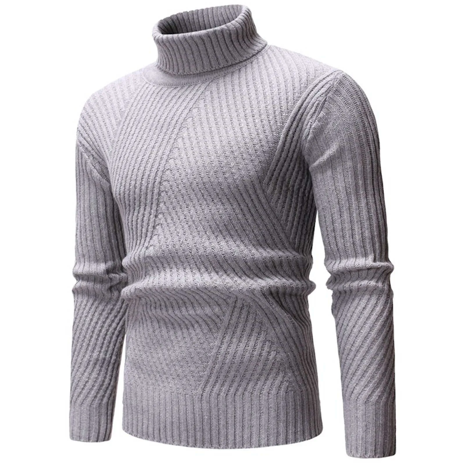 МужскиеОсенне-зимний однотонный тонкий свитер с длинными рукавами и высоким воротником