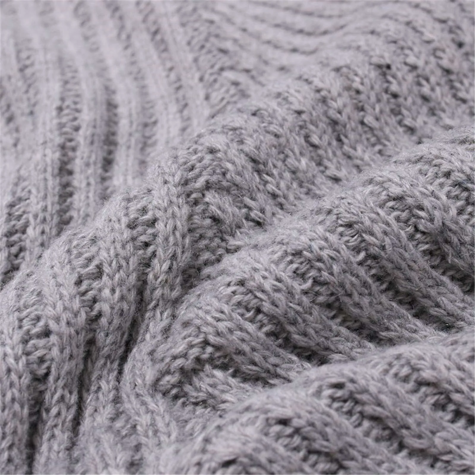 Мужской вязаный свитер осень-зима, теплый однотонный Повседневный облегающий свитер с длинным рукавом и высоким воротником, трикотажный топ
