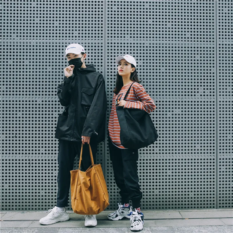 Большая сумка для покупок, повседневная холщовая вместительная дамская сумочка на плечо в минималистском стиле, однотонный тоут, многоразовый мешок