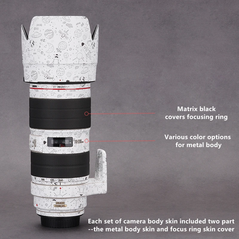 Винил премиум качества, используемый для этой наклейки, легко наносится-без суеты и беспорядка!Посылка включает только защитную пленку для автомобильной камерыСовместим с объективом Canon EF 70-200 мм f/2.8L IS II USM(Смотрите видео ниже, чтобы получить полную информацию о том, как применять на корпусе камеры шаг за шагом)Воплотите свои самые красочные концепции в жизнь-практически на поверхностиАвтомобильный винил-идеальная защитная кожа для вашей камеры