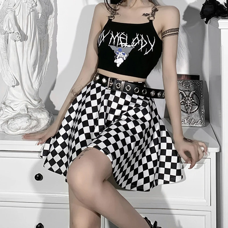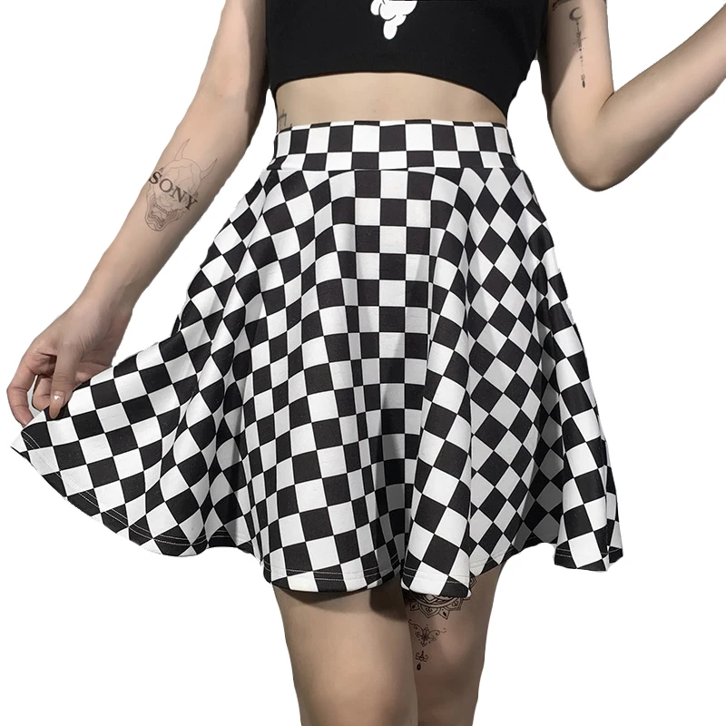 Юбка-мини женская в готическую клетку, черно-белая, с высокой талией